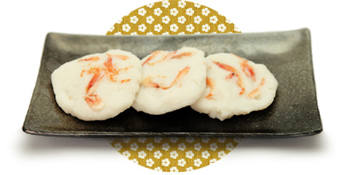 静岡県由比産の上質桜えび(乾燥)を上品に魚肉すりみの上につけて、蒸し上げました。目にも鮮やかな桜えびと真っ白な魚肉すりみのコントラストが絶妙です。蒸し上げたことで、桜えびの程良い塩加減が魚肉すり身を引き立てています。